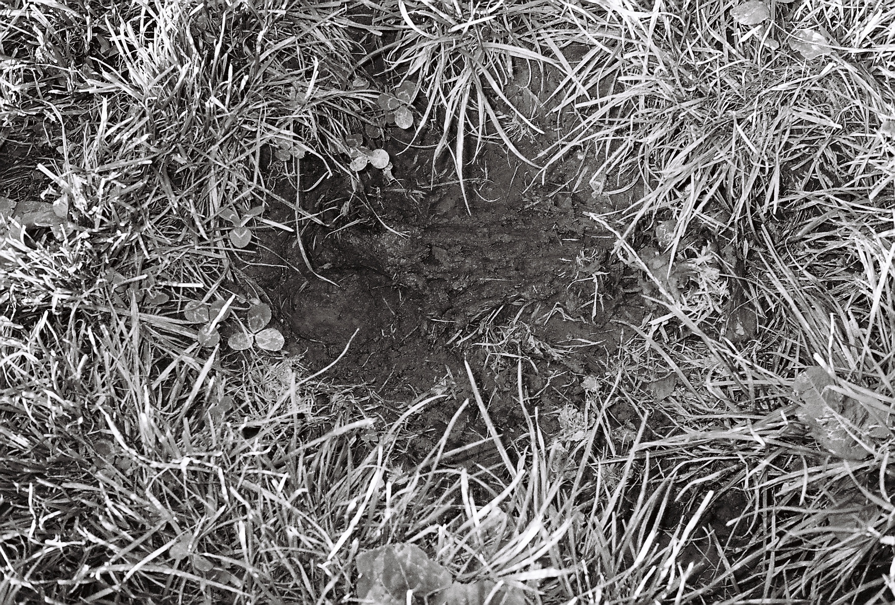 A black and white photo of a hole in the ground