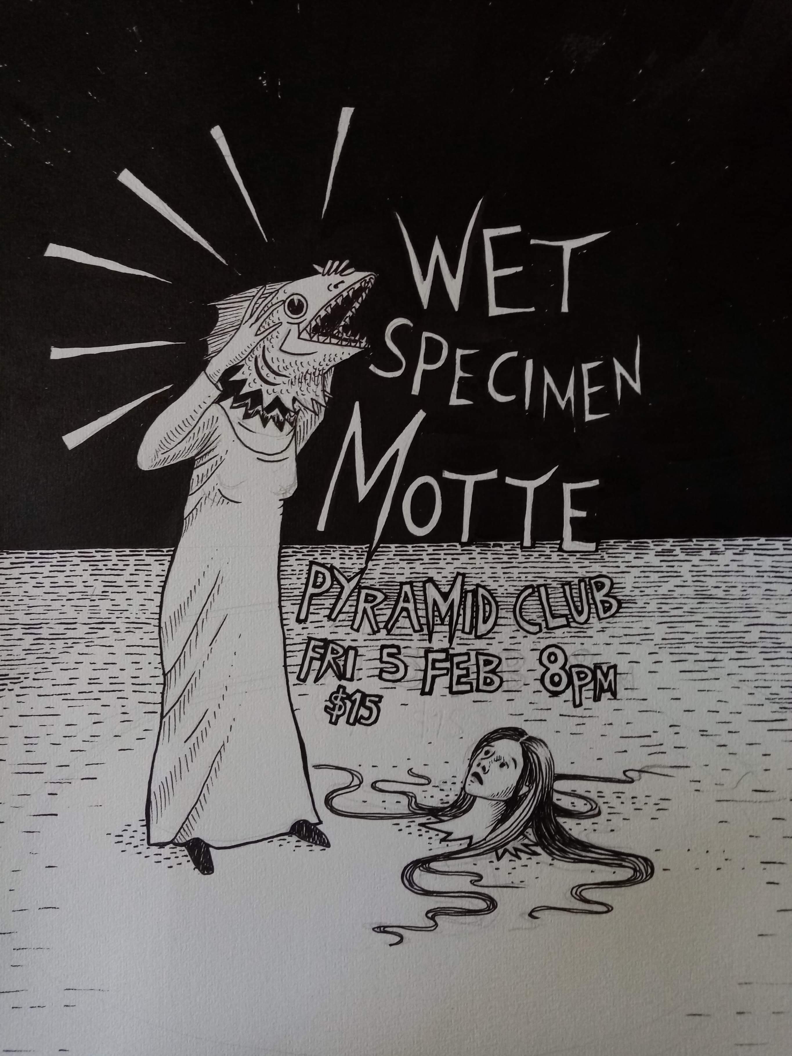 Koputai/Port Chalmers band, Wet Specimen (Lucy Hunter, Reg Norris, Chris Schmelz) head north for the first time, bringing their debut album 'Wet Dreamin', and will be sharing the evening with Motte (Anita Clark).
